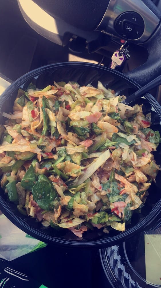 Juicy rotisserie-style chicken is mixed with fresh lettuce, baby spinach, tomatoes, cucumbers and other veggies of your choosing. We'll even let you choose your dressing. We're good like that.